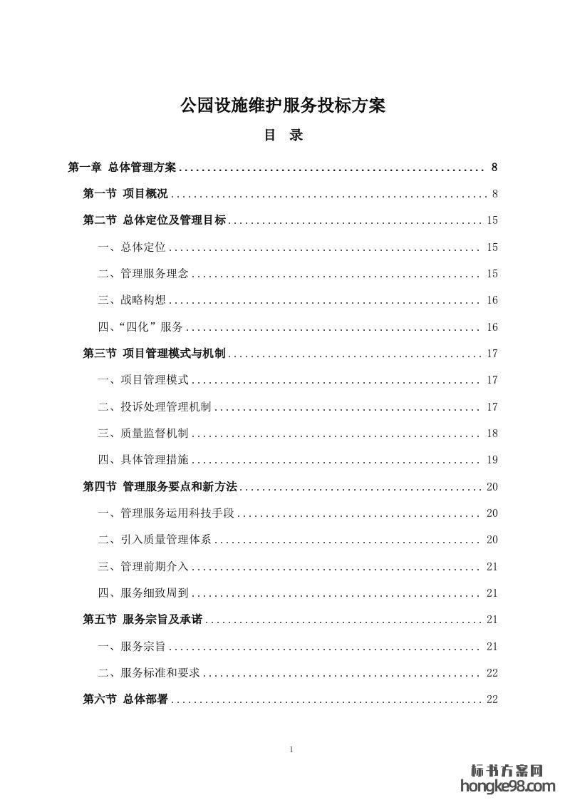 标题:公园设施维护服务标书投标方案(145页)
