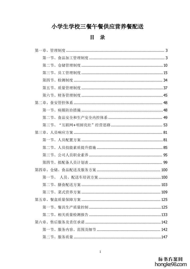 标题:小学生学校(校园)三餐午餐供应营养餐配送服务标书投标方案(188页)