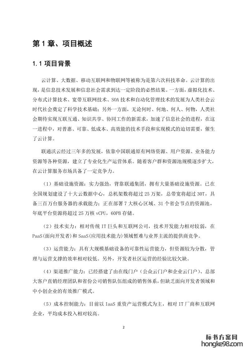 标题:云计算产品能力系统软件平台研发项目标书投标方案(211页)