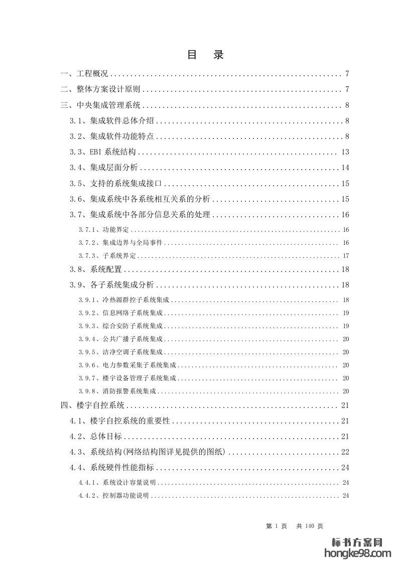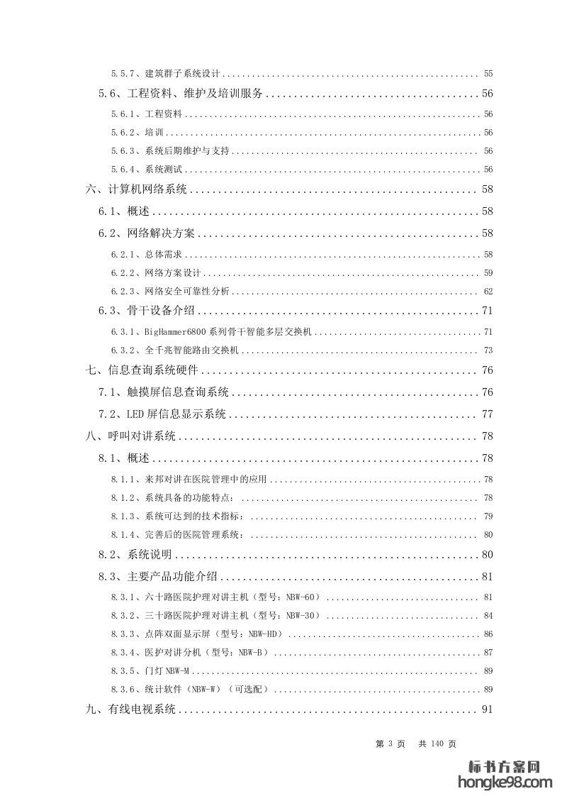 标题:某医院楼宇智能化系统设计标书投标技术方案(140页)