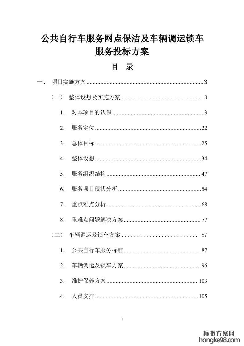 标题:公共自行车服务网点保洁及车辆调运锁车服务标书投标方案(201页)