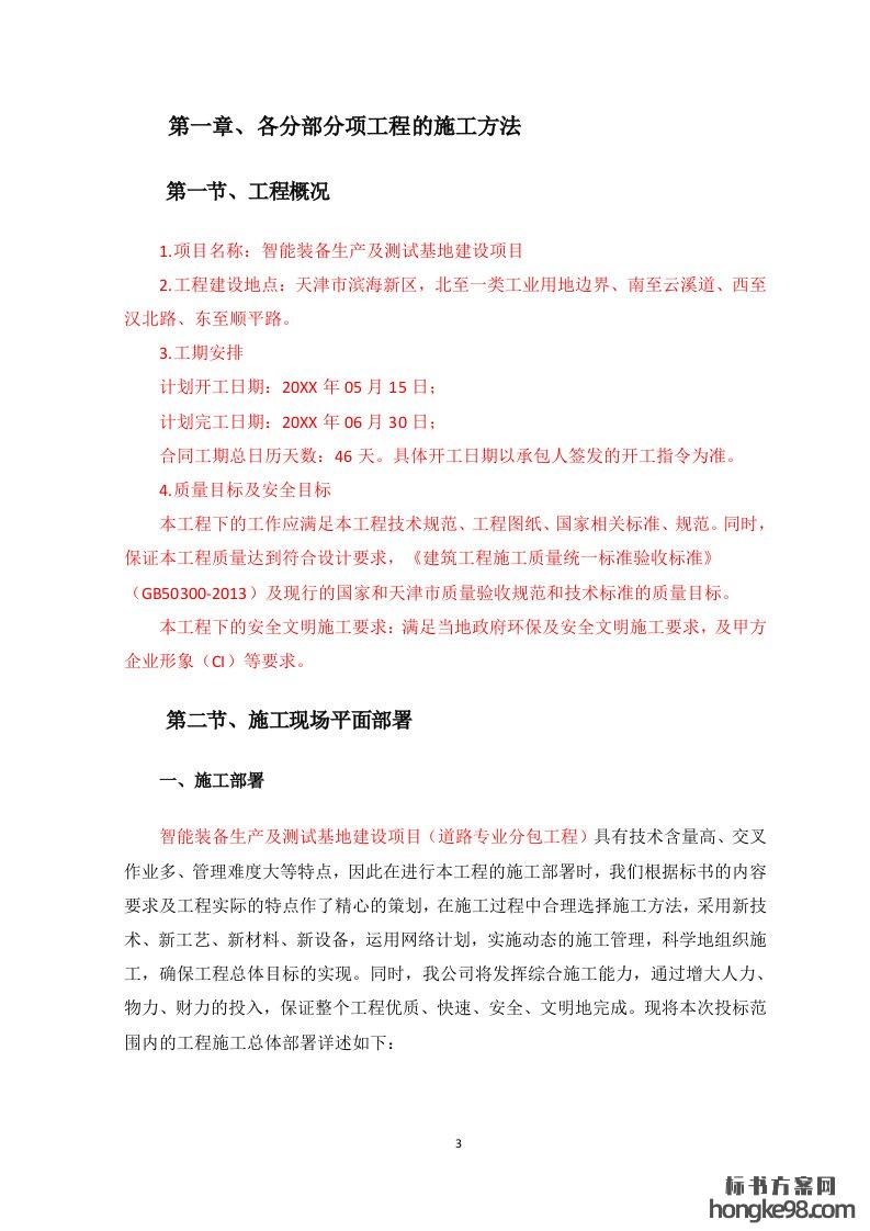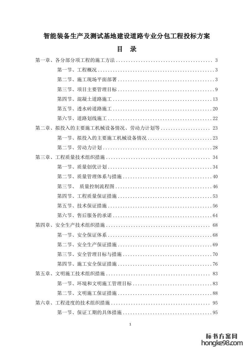 标题:智能装备生产及测试基地建设道路专业分包工程标书投标方案(144页)