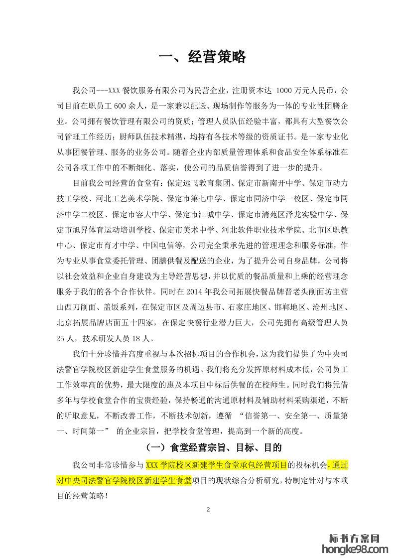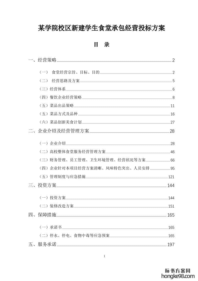 标题:某学院校区校园新建学生食堂餐饮承包经营标书投标方案(201页)