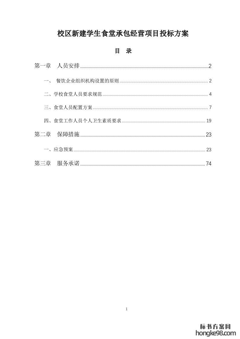 标题:校区新建学生食堂餐饮承包经营项目标书投标技术方案(83页)