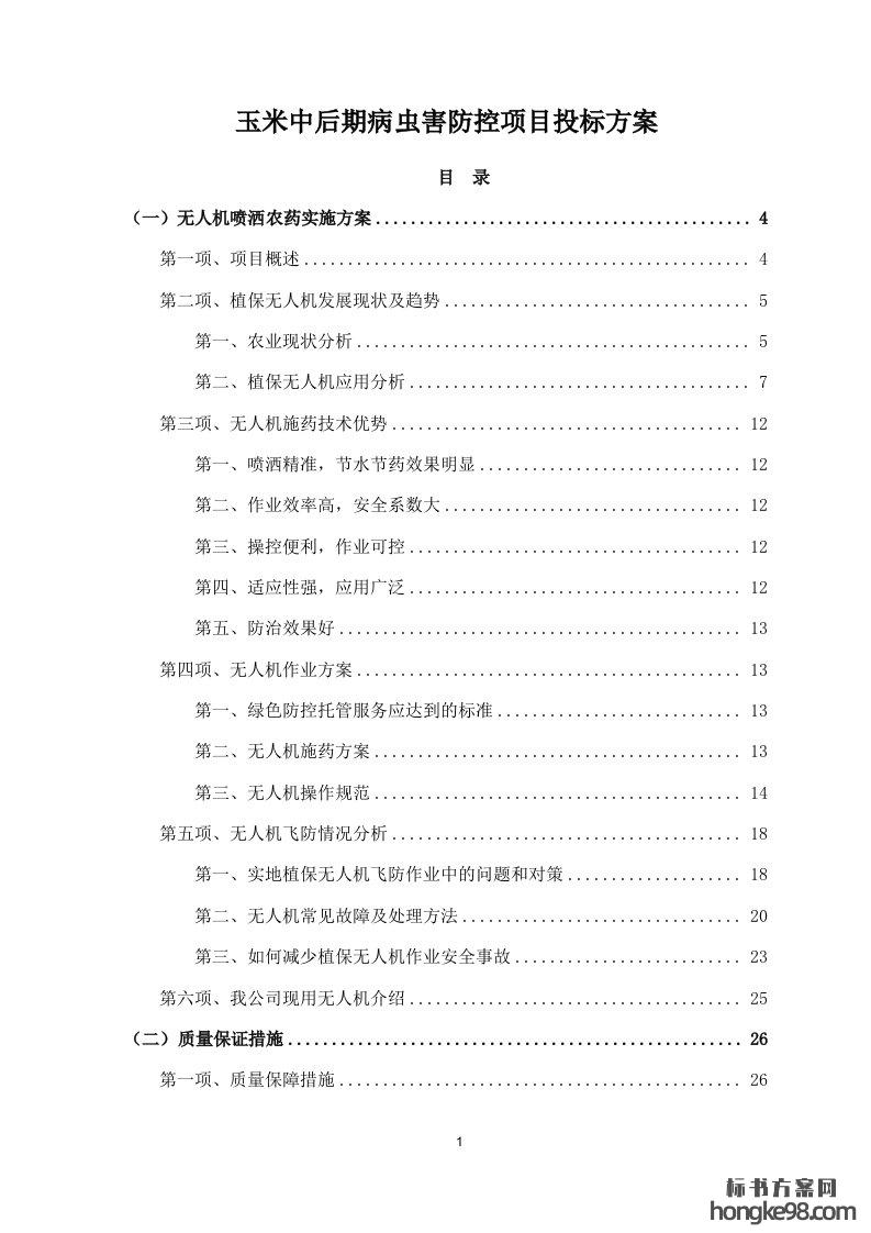 标题:玉米中后期病虫害防控项目标书投标方案(123页)