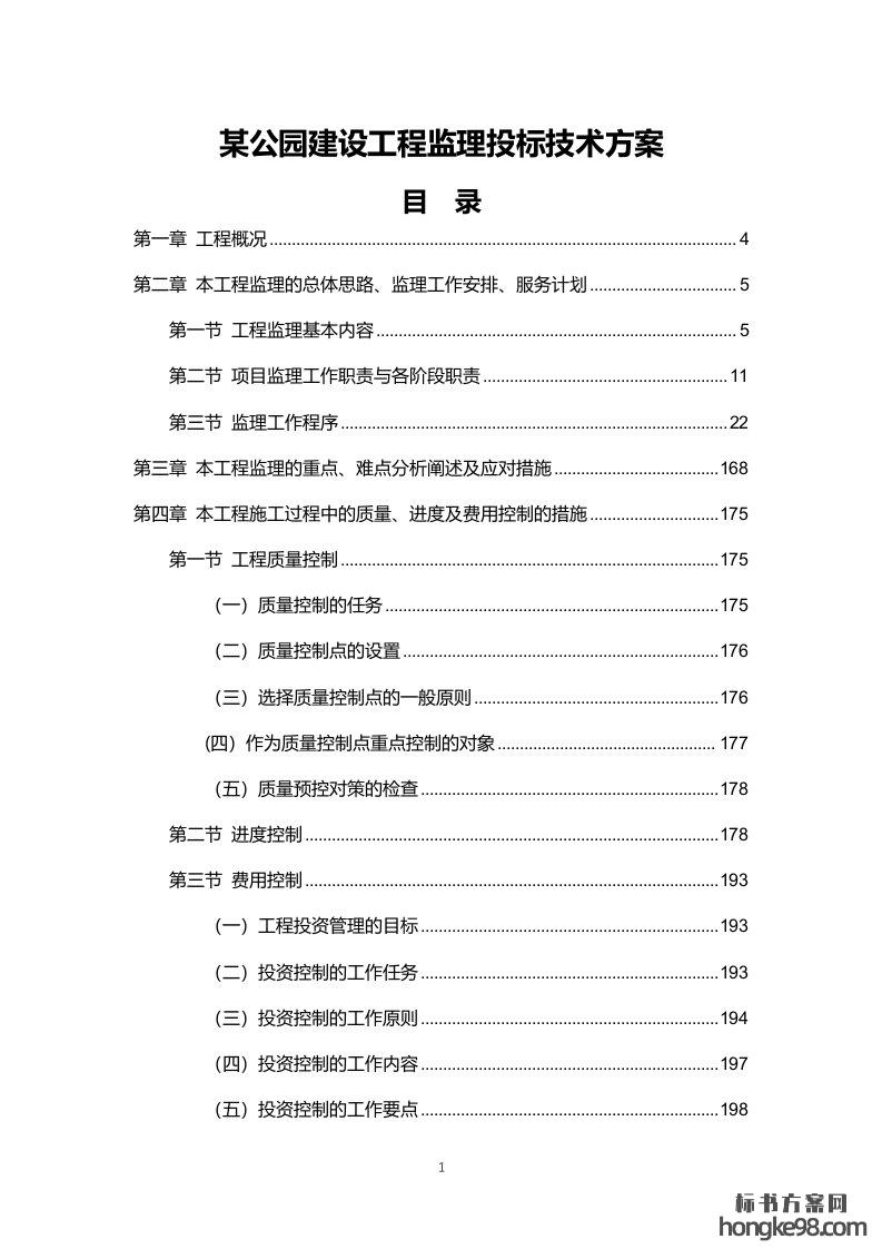 标题:某公园建设工程监理服务标书投标技术方案(266页)