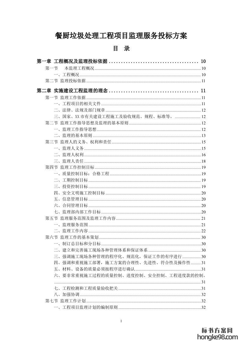 标题:餐厨垃圾处理工程项目监理服务标书投标方案(404页)