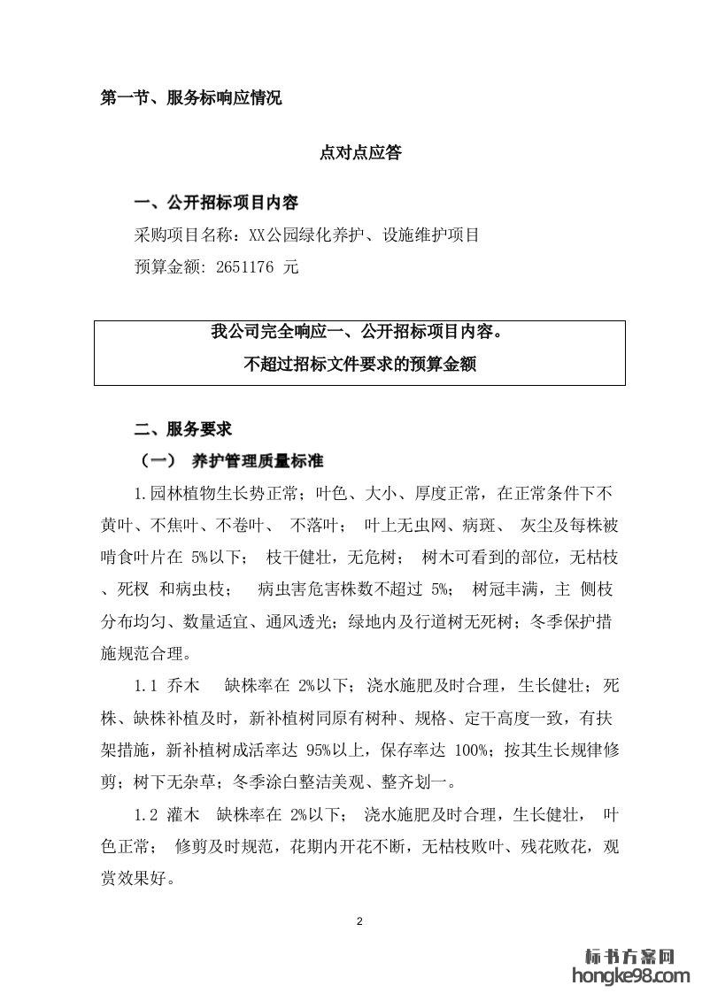 标题:某公园绿化养护、设施维护服务标书投标方案(87页)