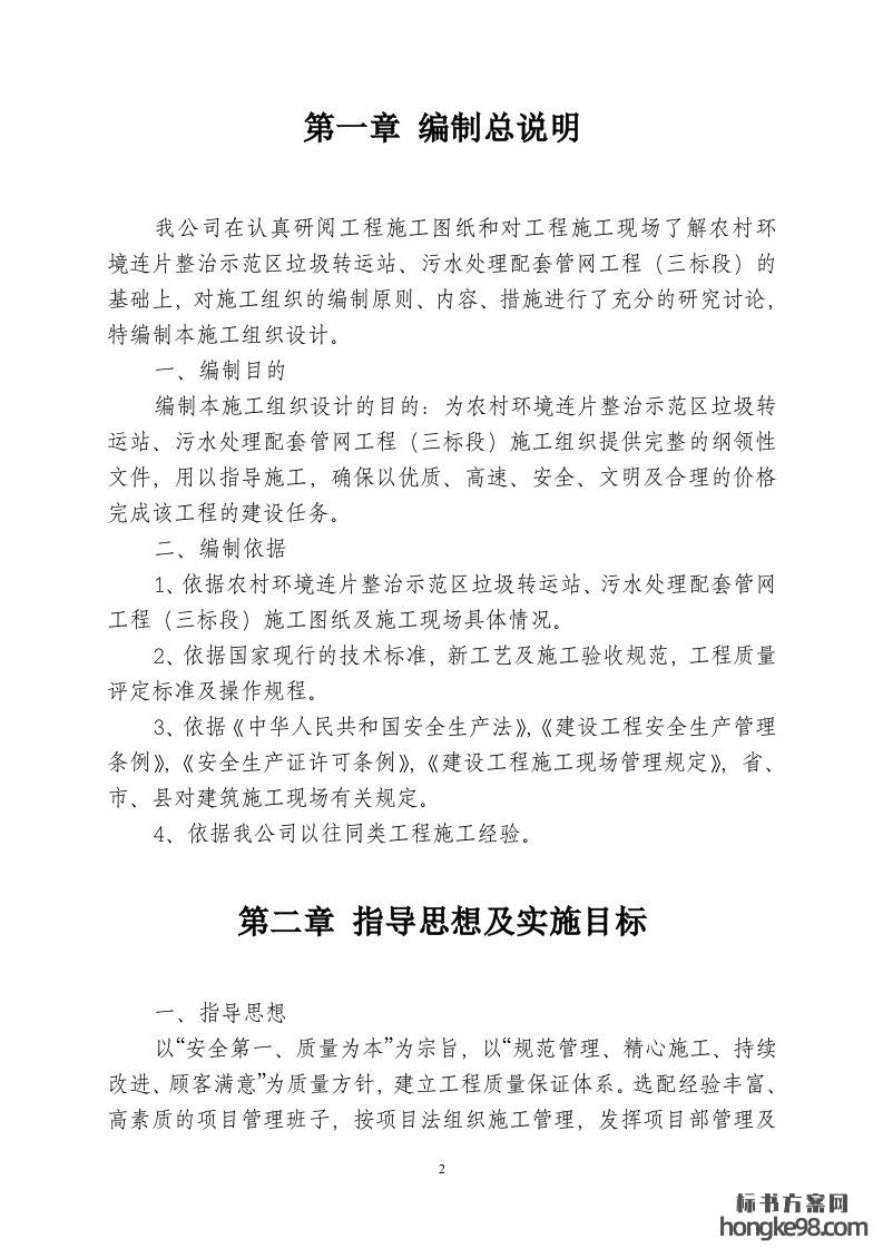 标题:农村环境连片整治示范区垃圾转运站、污水处理配套管网工程施工组织设计标书投标方案(51页)