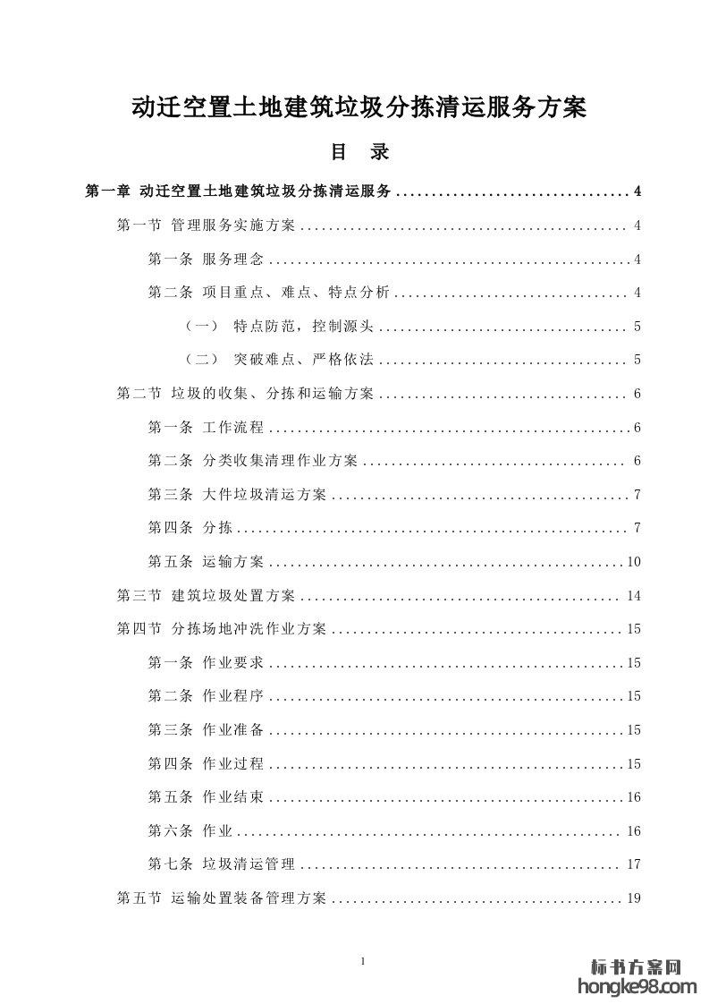 标题:动迁空置土地建筑垃圾分拣清运服务方案(47页)