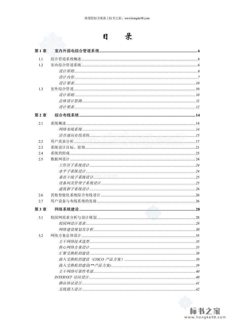 标题:某大学新校区弱电智能化系统设计方案投标文件(219页)