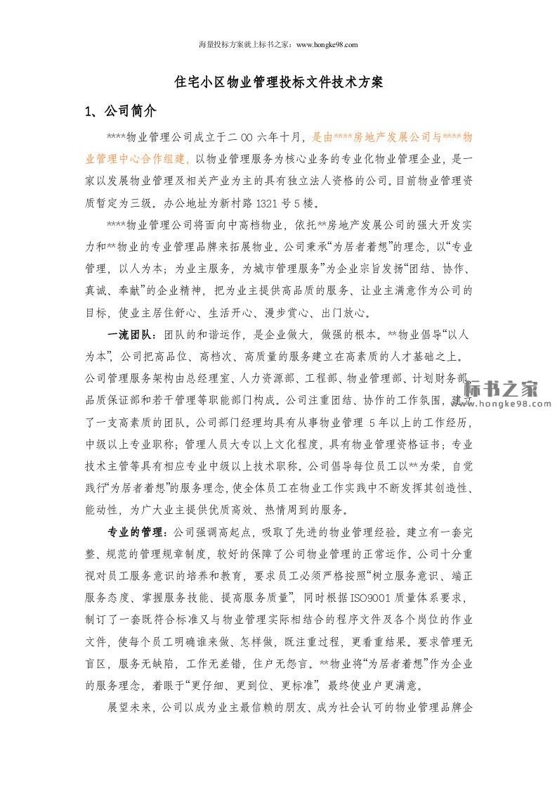 标题:住宅小区物业管理投标文件技术方案(76页)
