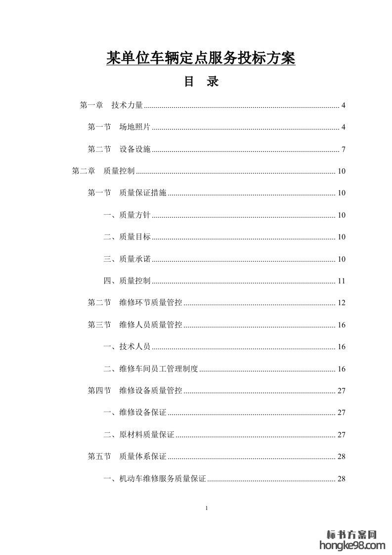 标题:某单位车辆定点维修服务标书投标方案(115页)