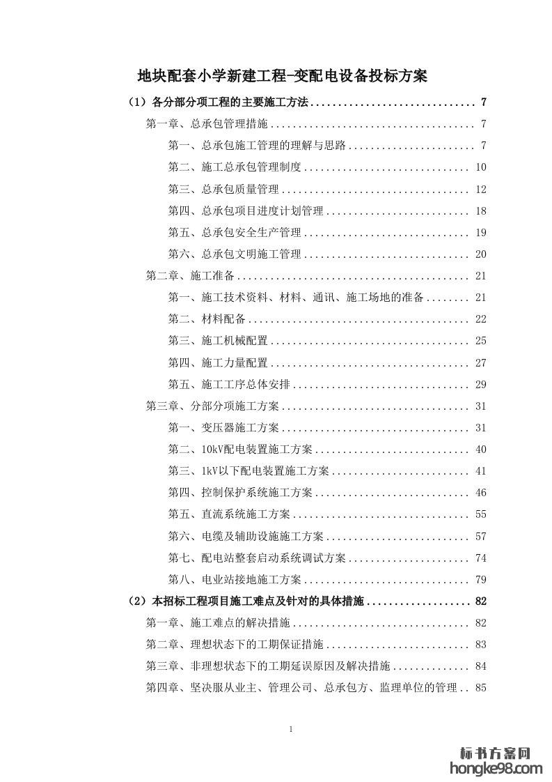 标题:配套小学(校园)新建工程-变配电设备标书投标方案(300页)