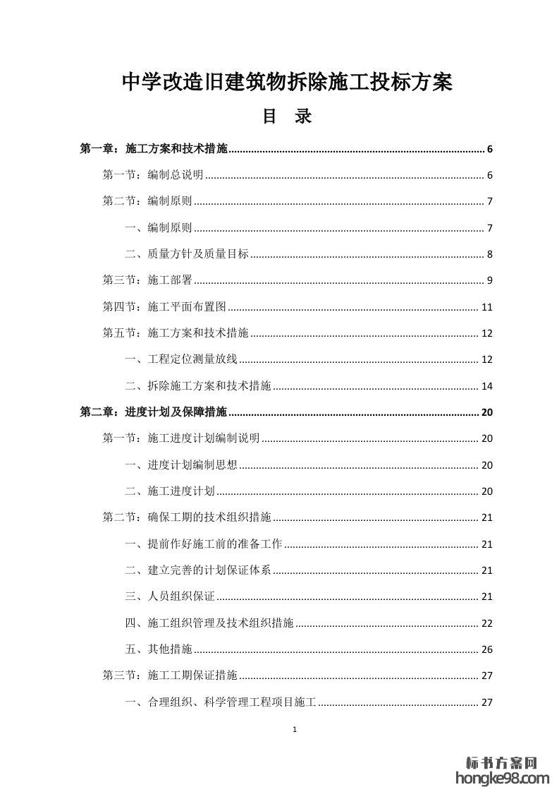 标题:中学(校园)改造旧建筑物拆除施工标书投标方案(108页)