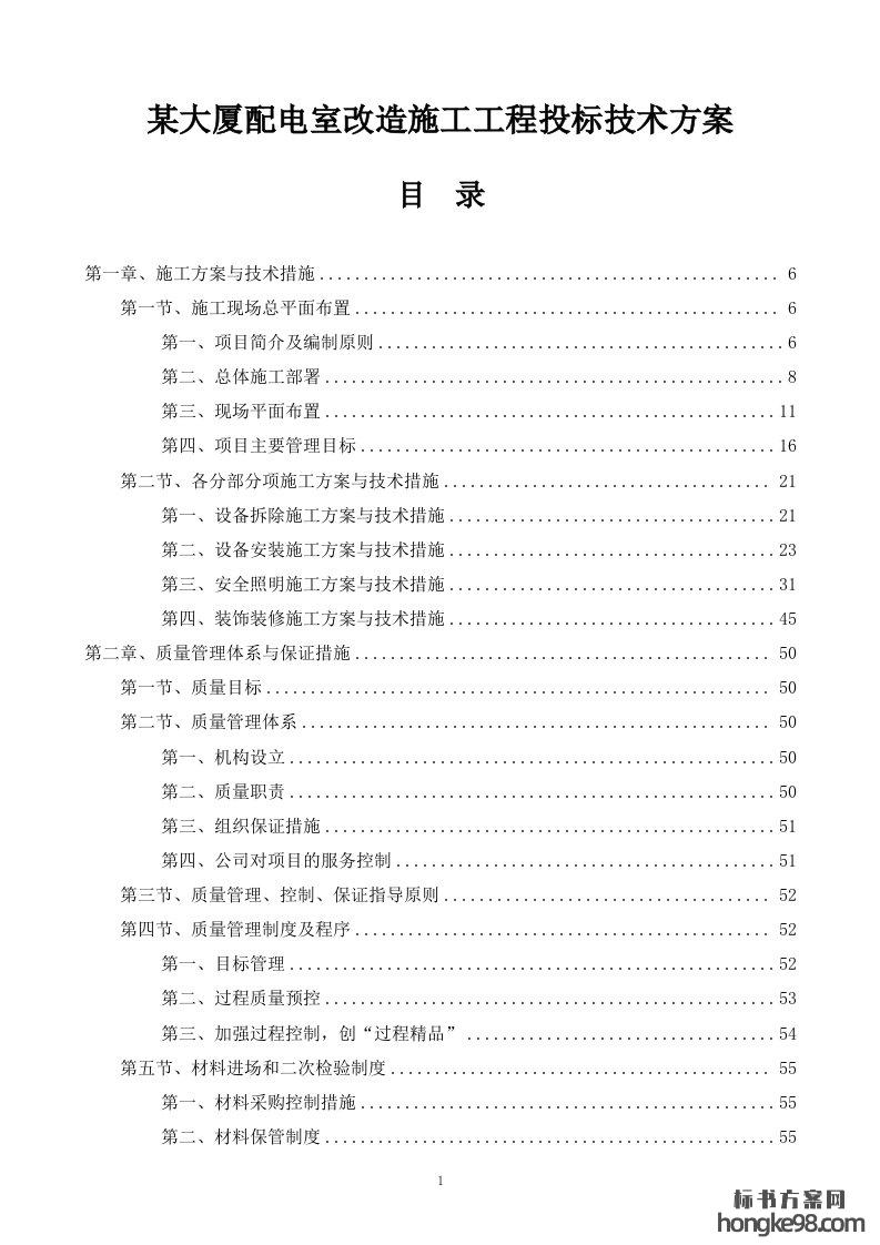 标题:某大厦配电室改造施工工程标书投标技术方案(238页)