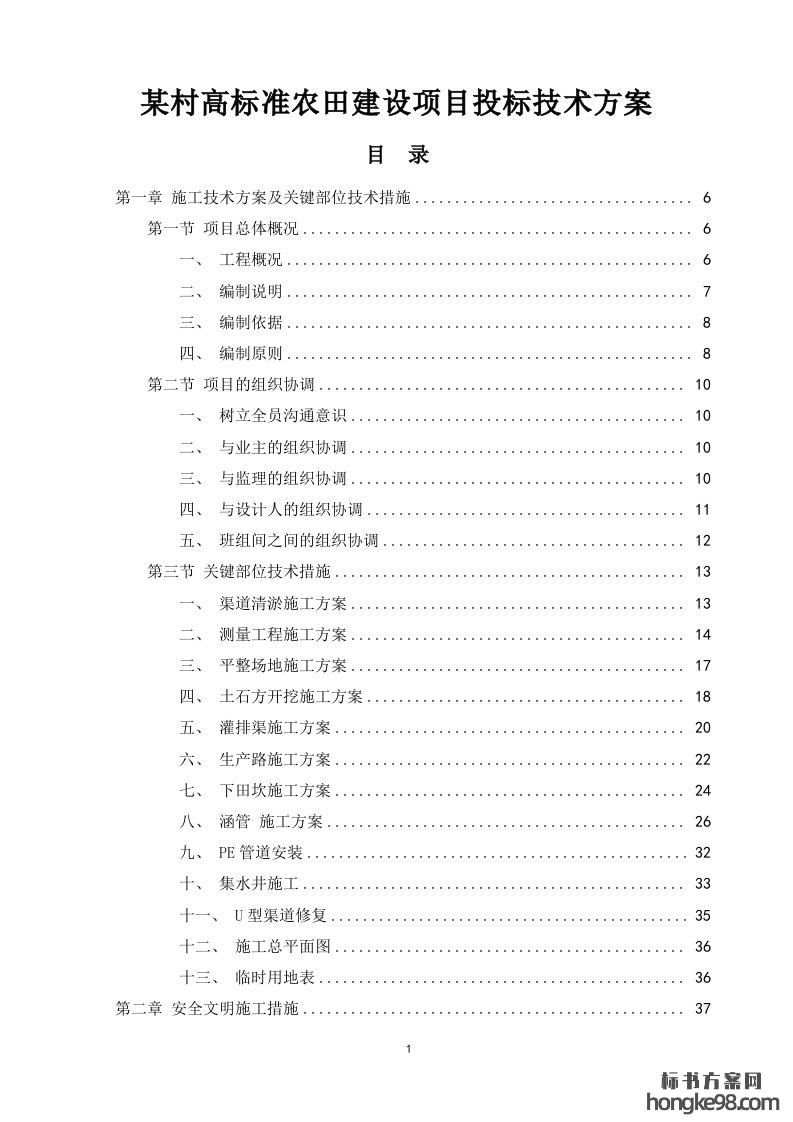 标题:图表某村高标准农田建设项目标书投标技术方案(149页)