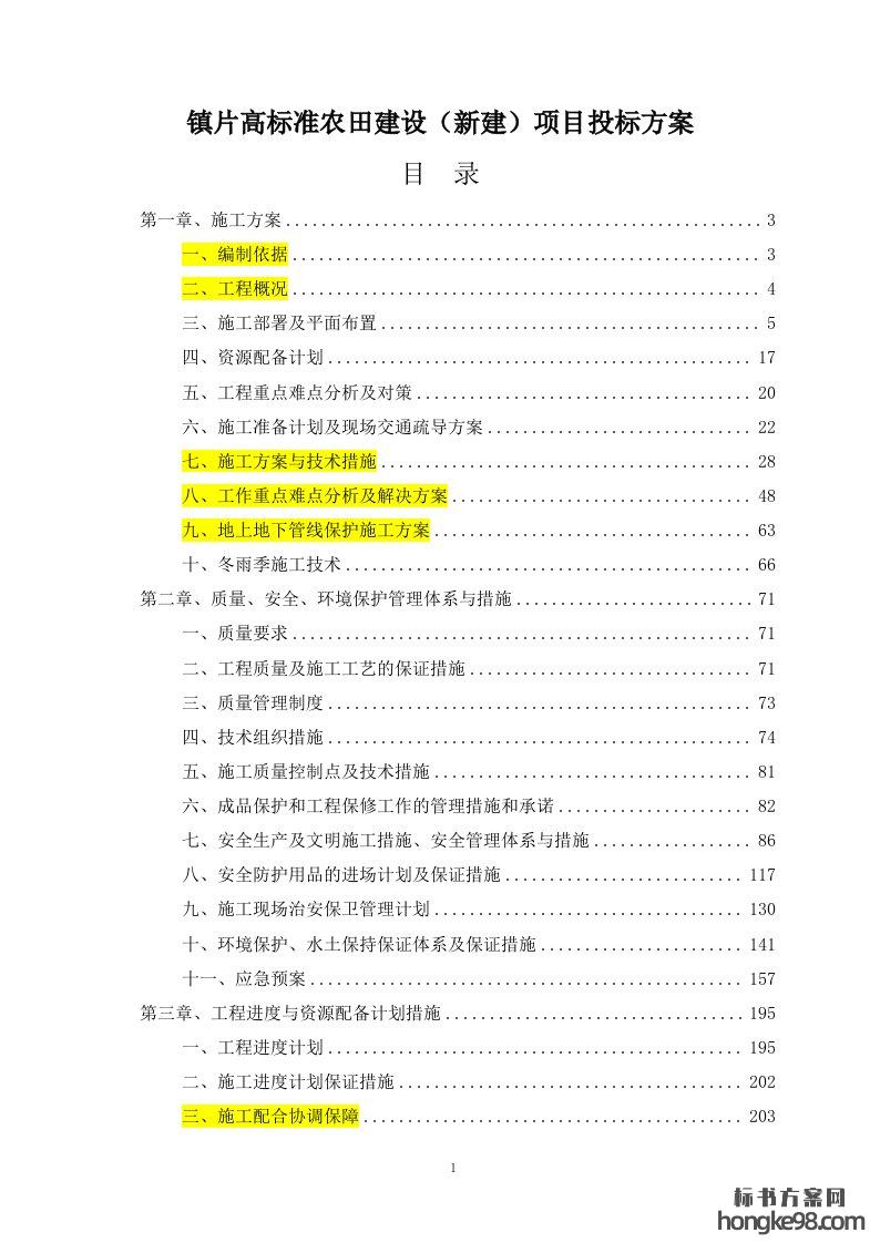 标题:镇片高标准农田建设(新建)项目标书投标方案(316页)