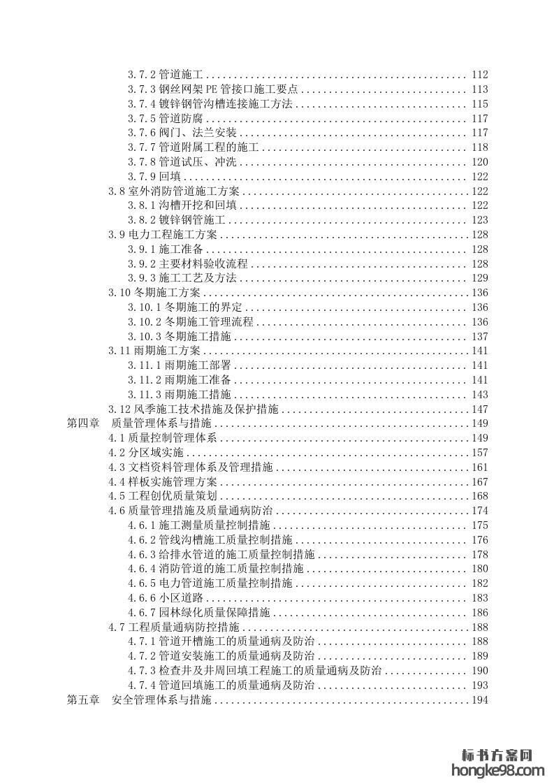 标题:安置住房统建项目外线工程标书投标方案技术标(376页)