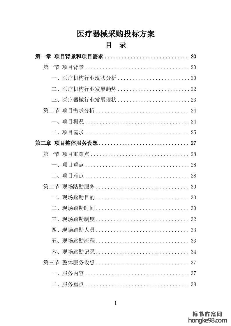 标题:医疗器械采购标书投标方案(352页)