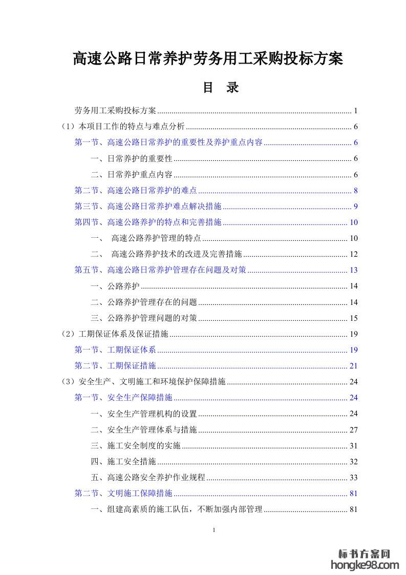 标题:高速公路日常养护劳务用工采购标书投标方案(233页)
