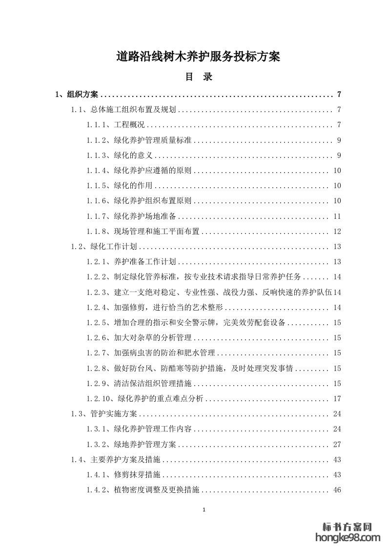 标题:道路沿线植物树木养护服务标书投标方案(211页)