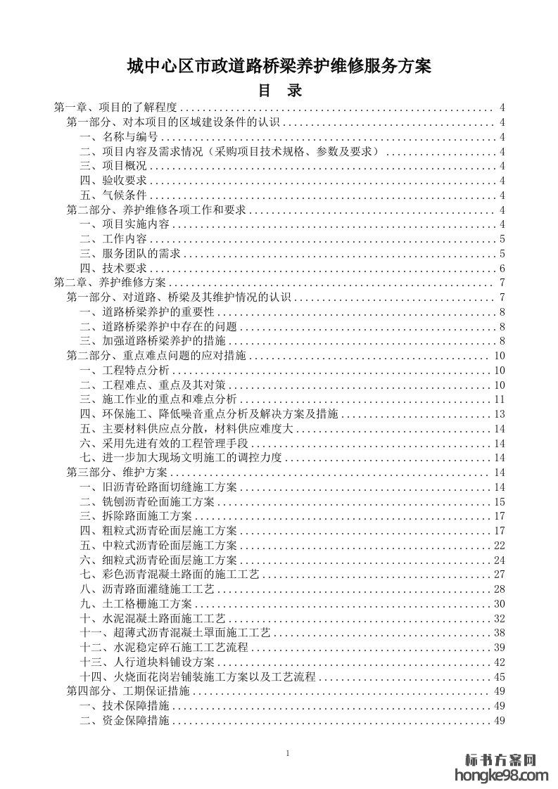 标题:城中心区市政道路桥梁养护维修服务方案(199页)