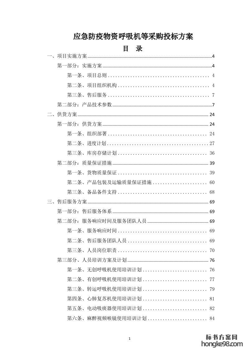 标题:应急防疫物资呼吸机等采购标书投标方案(130页)