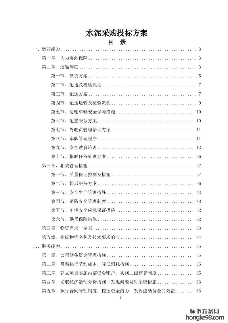 标题:水泥采购标书投标方案(129页)