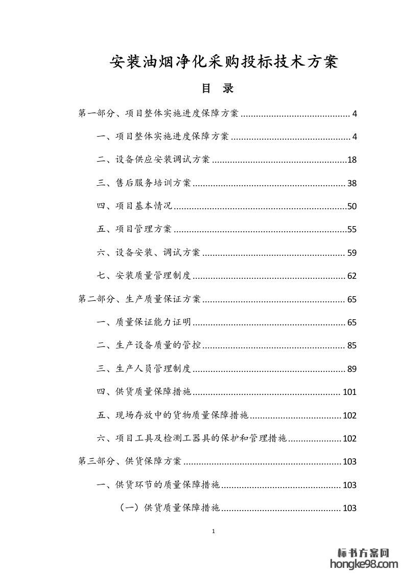 标题:安装油烟净化采购标书投标技术方案(162页)