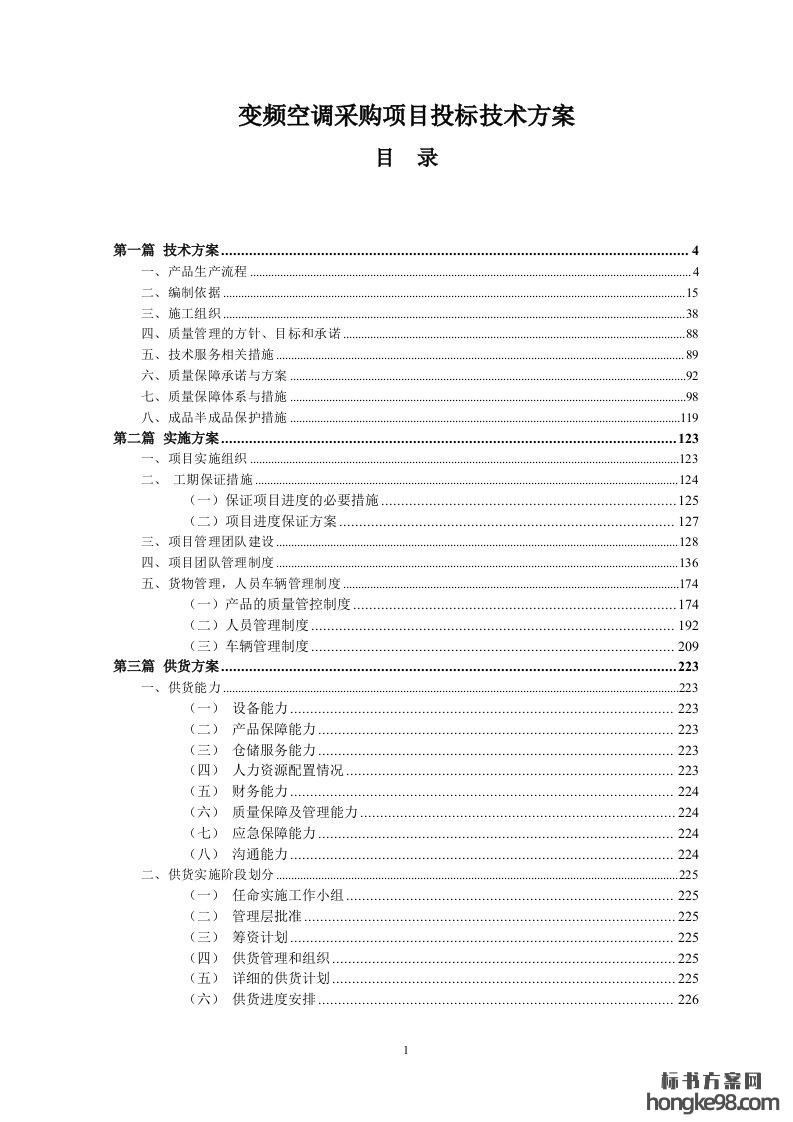 标题:壁挂、柜式空调采购项目标书投标技术方案(351页)