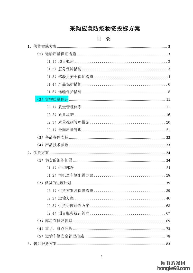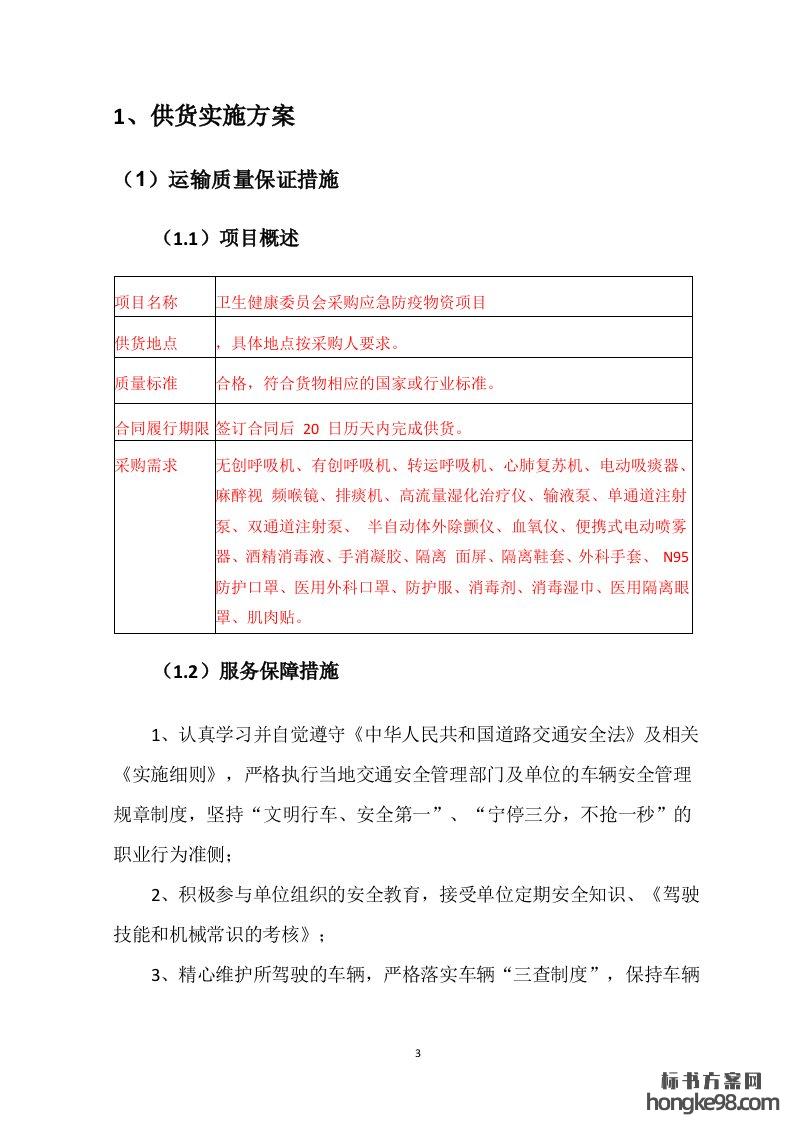 标题:采购应急防疫物资标书投标方案(151页)