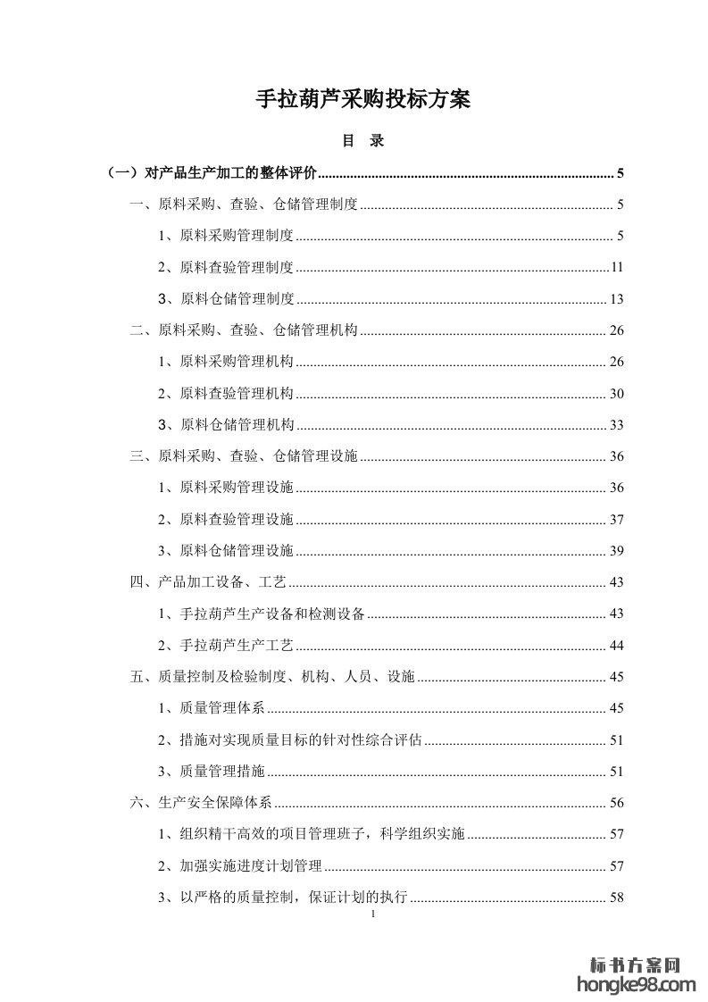 标题:手拉葫芦采购标书投标方案(164页)