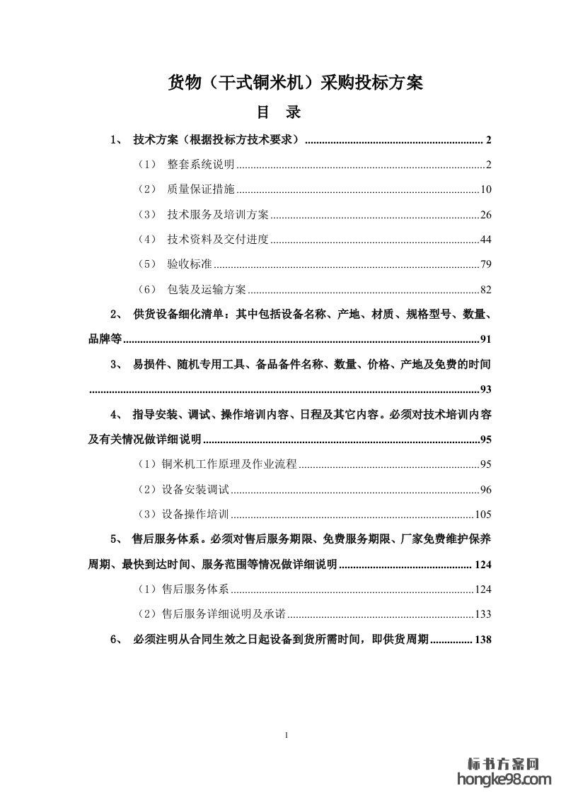 标题:货物(干式铜米机)采购标书投标方案(138页)