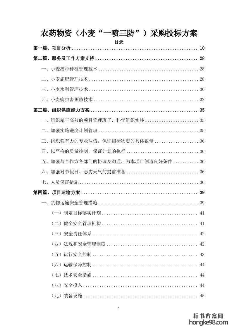 标题:农药物资(小麦“一喷三防”)采购标书投标方案(184页)