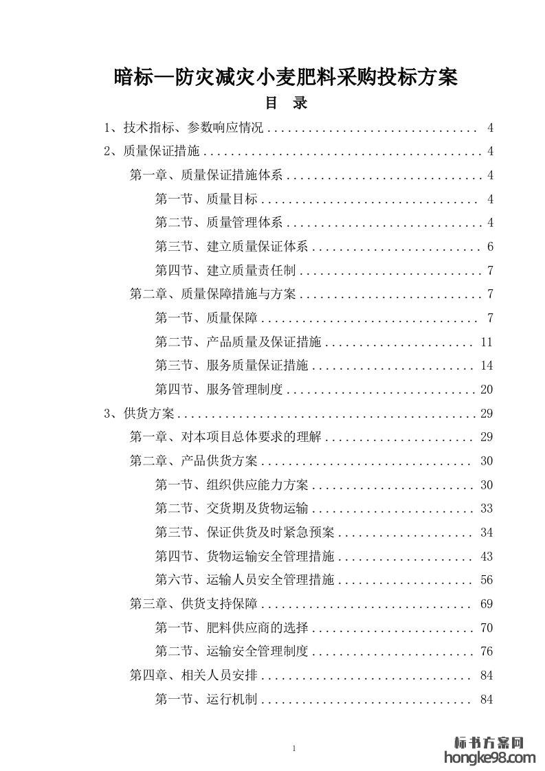 标题:防灾减灾小麦肥料采购标书投标方案(164页)