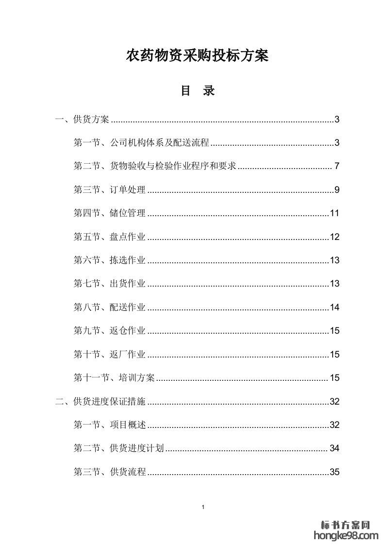 标题:农药物资采购标书投标方案(104页)