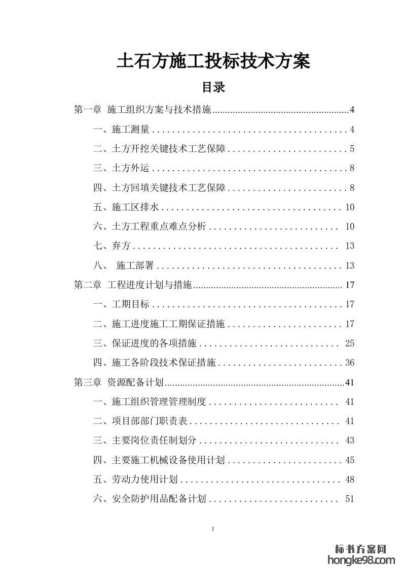 标题:土石方施工标书投标技术方案(110页)