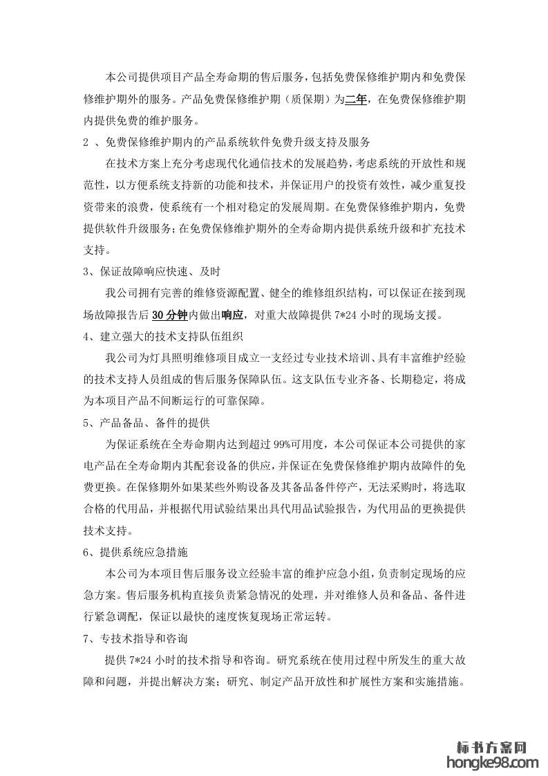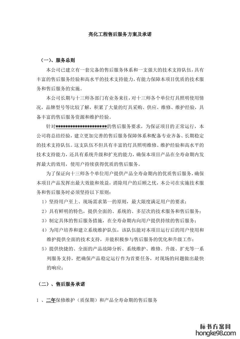 标题:亮化工程售后服务方案及优惠承诺(14页)