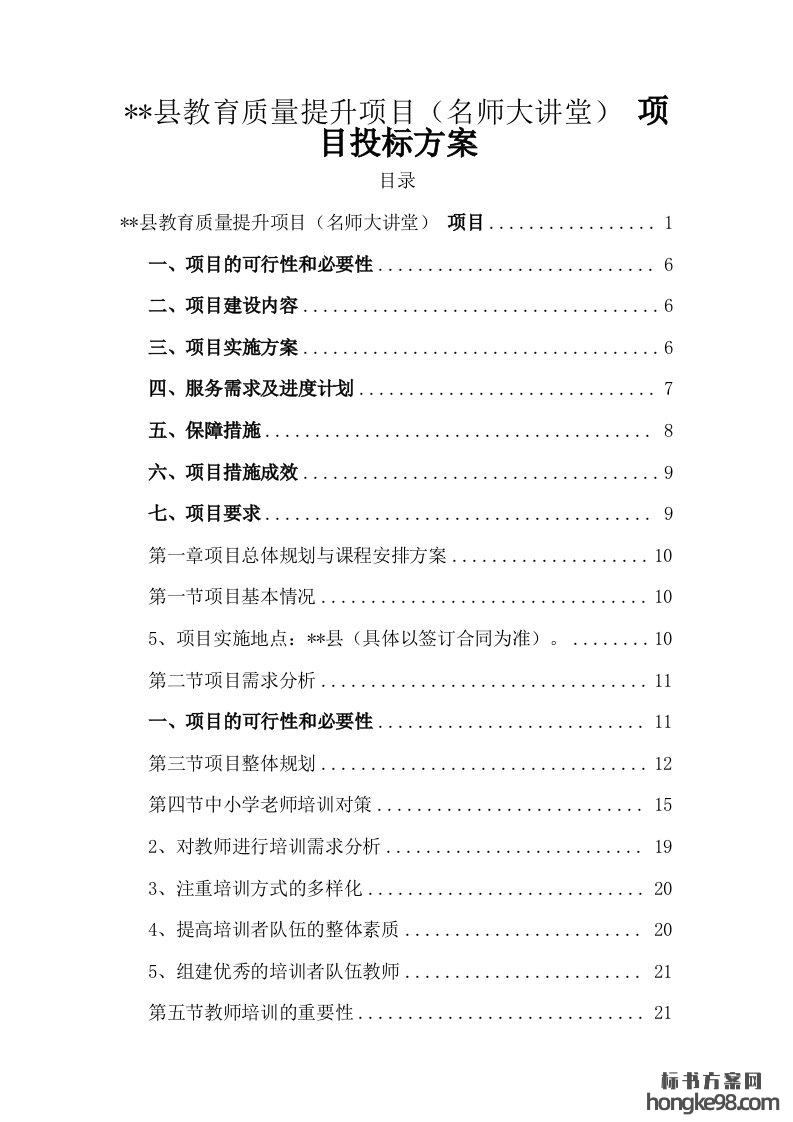 标题:教育质量提升项目(名师大讲堂) 项目投标方案(147页)