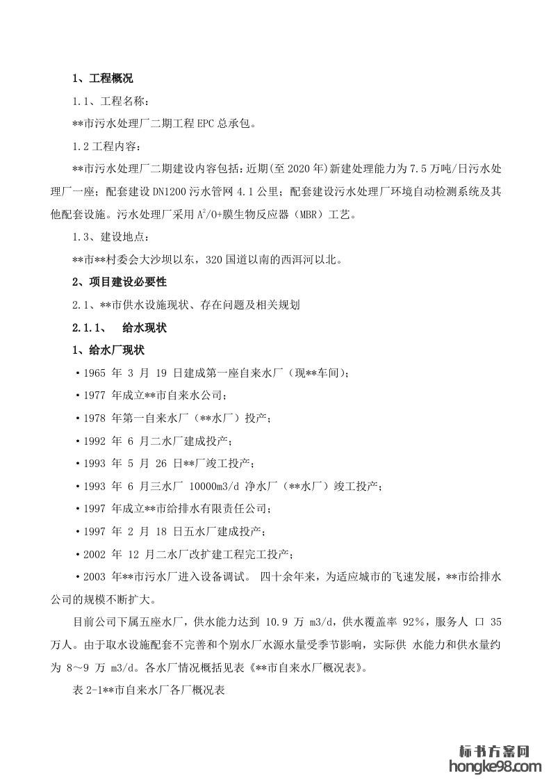 标题:市污水处理厂EPC总承包大纲方案(127页)