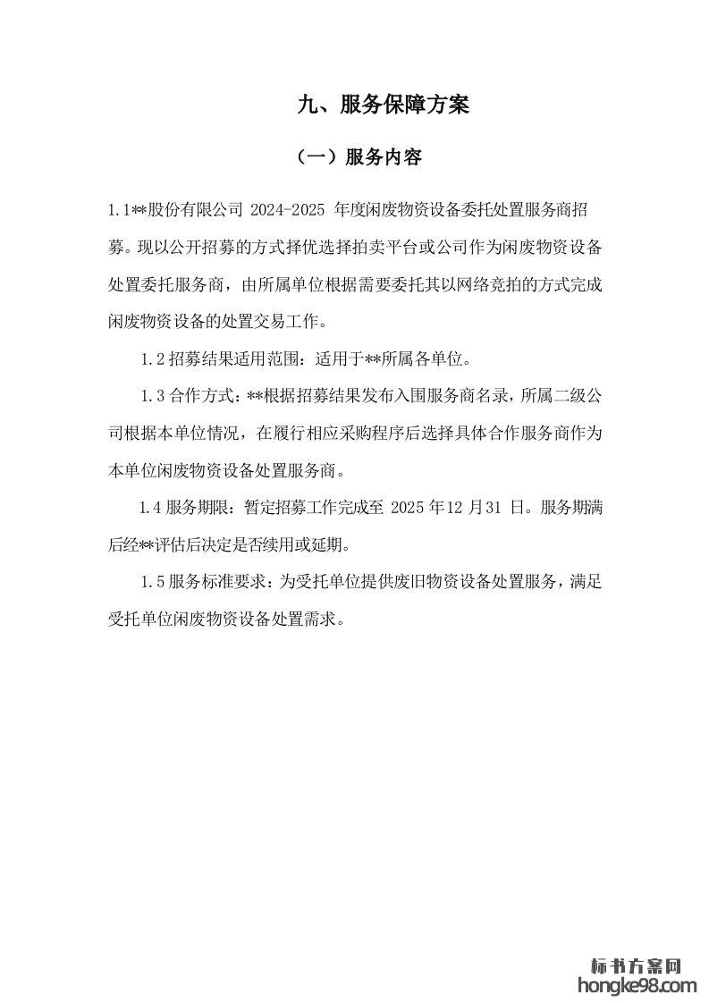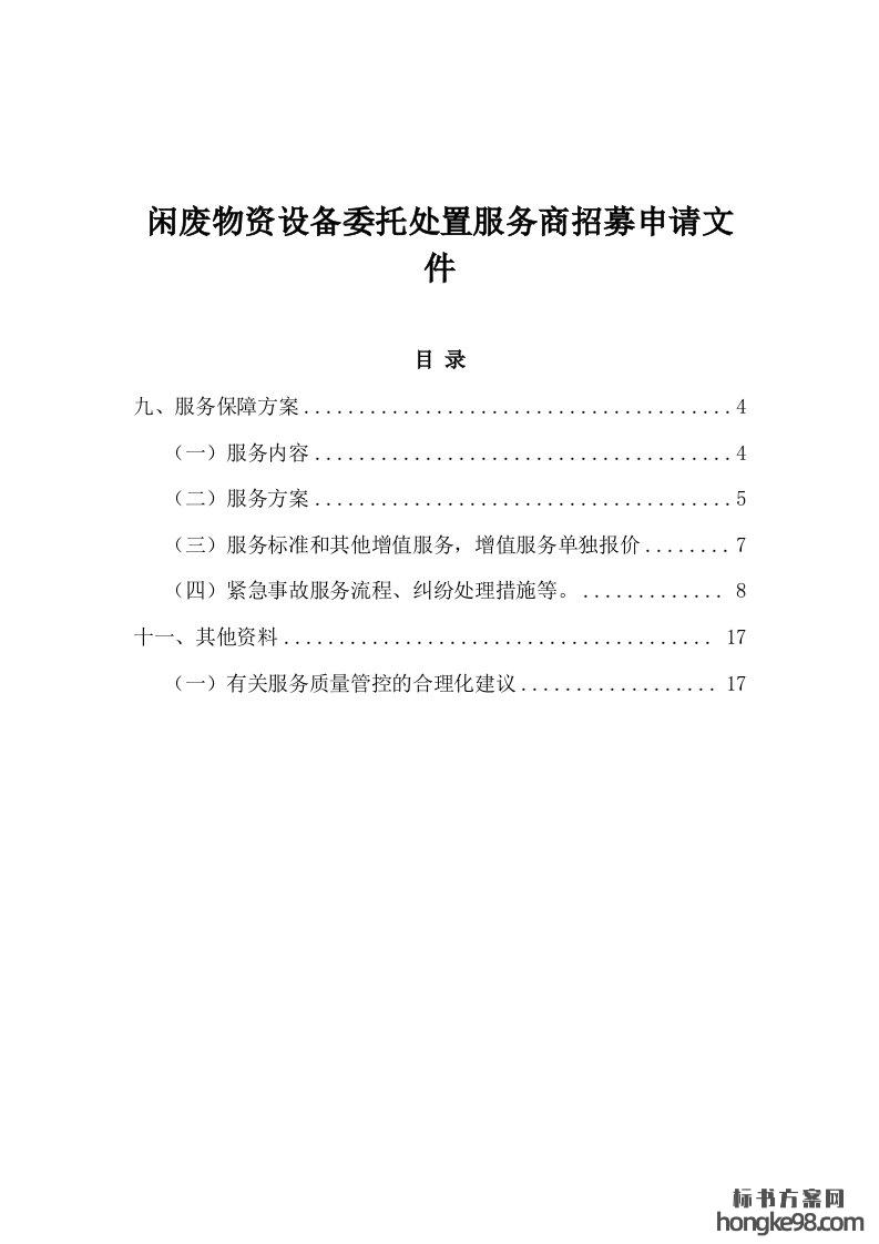 标题:闲废物资设备委托处置服务商招募申请投标方案(18页)