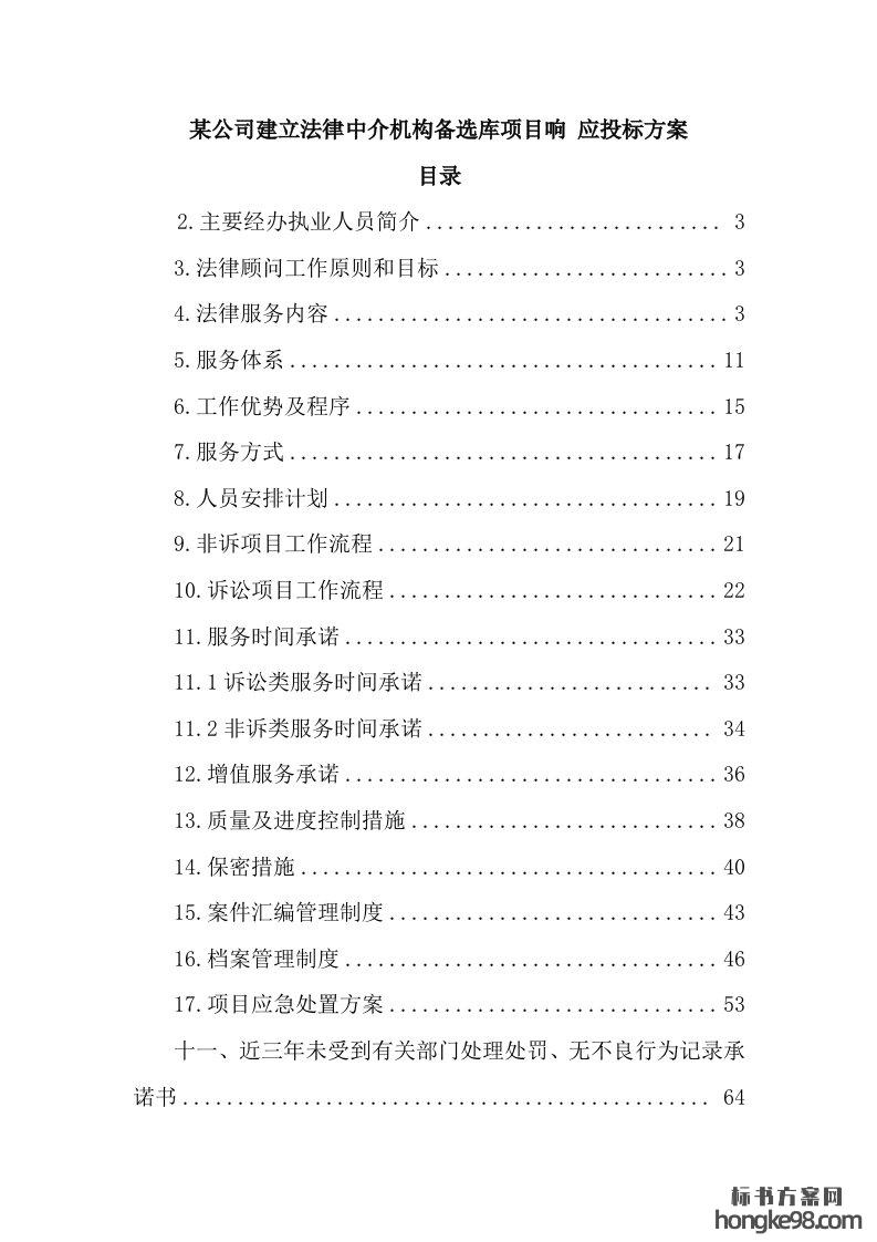 标题:法律中介机构备选库项目响应投标方案(64页)