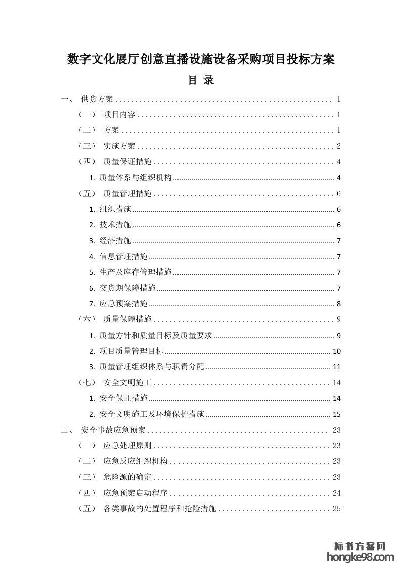 标题:数字文化展厅创意直播设施设备采购项目投标方案112页