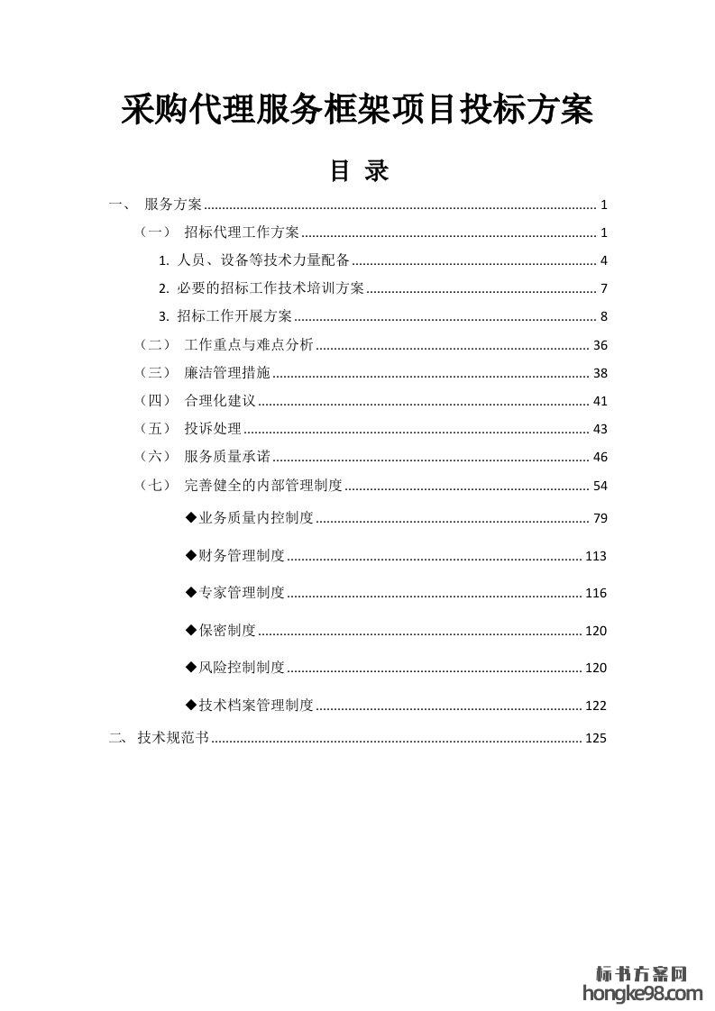 标题:采购代理服务框架项目投标方案129页
