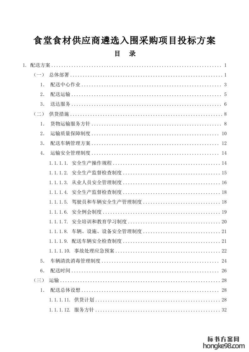 标题:食堂食材供应商遴选入围采购项目投标方案280页