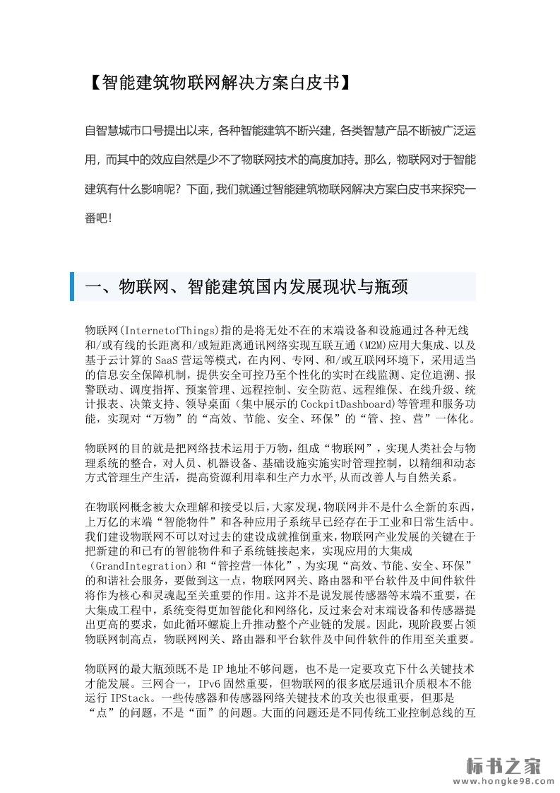 标题:智能建筑物联网解决方案白皮书(9页)