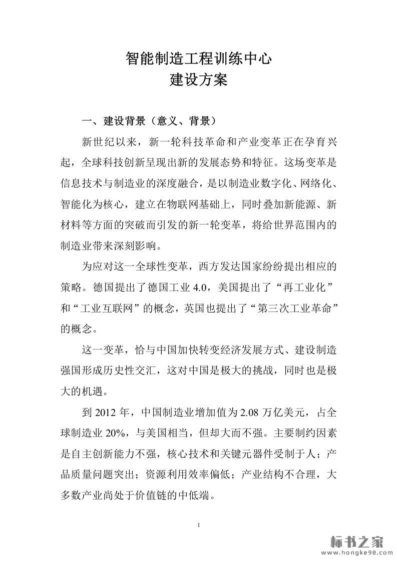 标题:智能制造工程训练中心建设方案(45页)