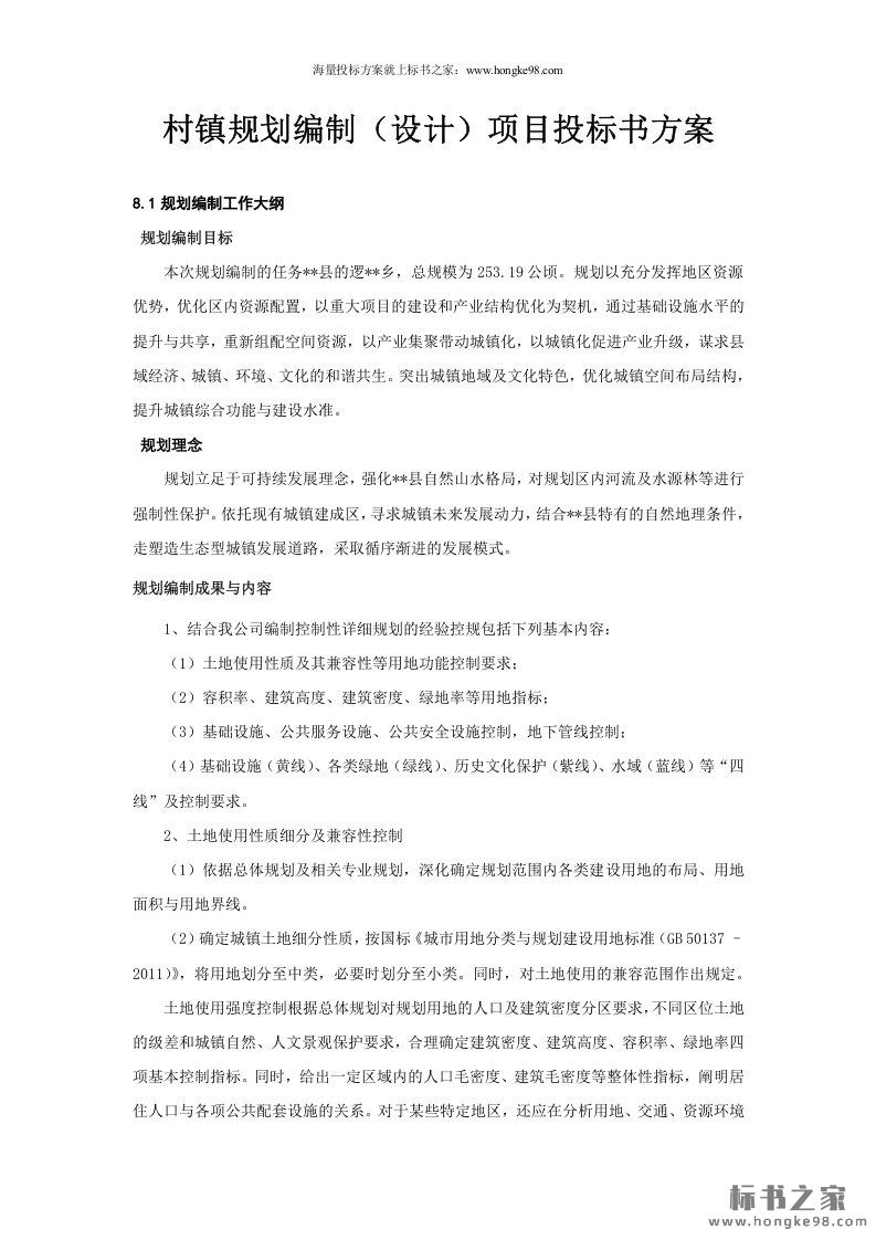 标题:村镇规划编制(设计)项目投标书方案(7页)