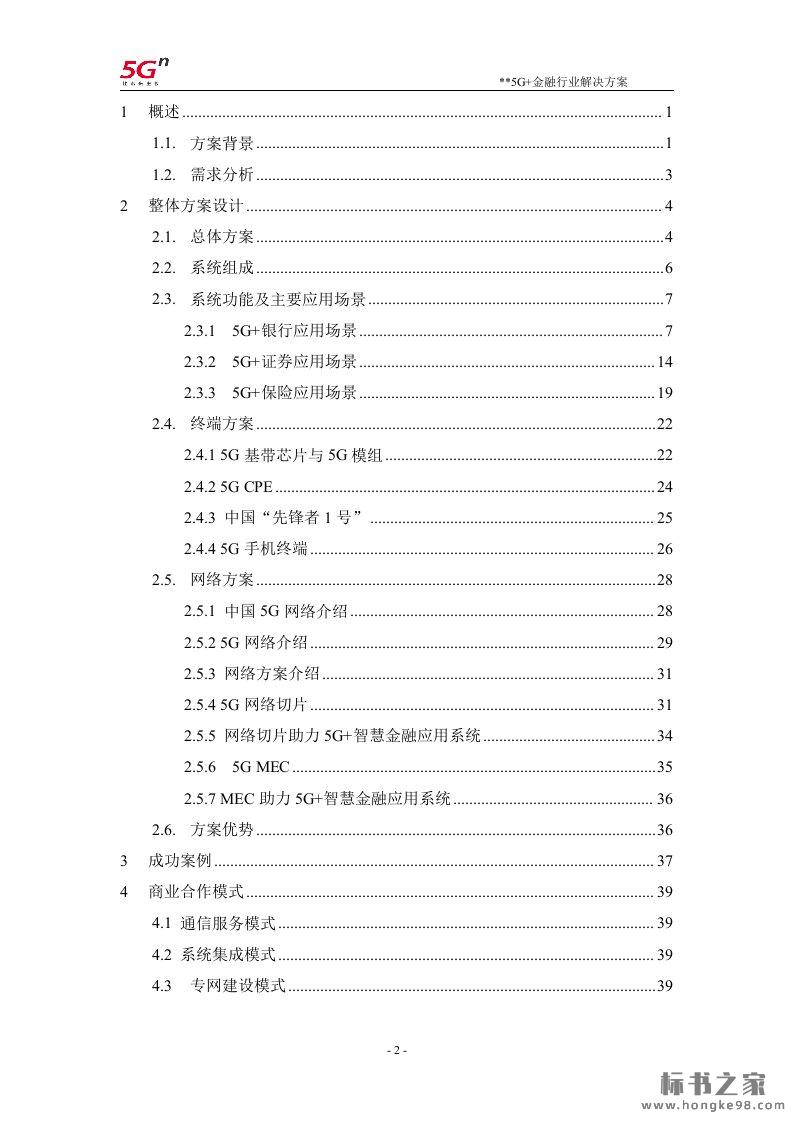 标题:5G+金融行业解决方案(42页)